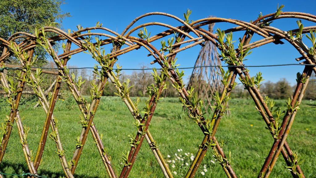Exemples de réalisations en osier vivant pour le jardin (haie tressée, cabane)